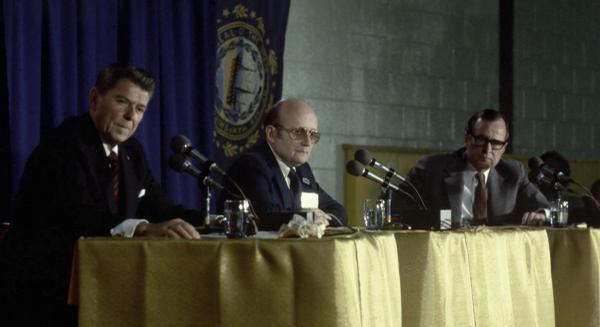 John Anderson threatened to take votes from both parties. Capitalizing on the vitriol of the campaign, he said the two major candidates were acting “like two tarantulas in a bottle.” When asked if he was a spoil candidate, he replied, “What’s to spoil? Spoil the chances of two men at least half the country doesn’t want?” He was critical of Reagan’s economic plans and called Carter a failed president. Anderson successfully got on the ballot in all fifty states and rose enough in the polls to join a debate sponsored by the League of Women Voters. Carter initially refused to participate in debates, but Reagan accepted the challenge. Reagan performed well and made up ground from his recent gaffes. As the campaign progressed, Anderson struggled to maintain support, as voters knew he was unlikely to win.