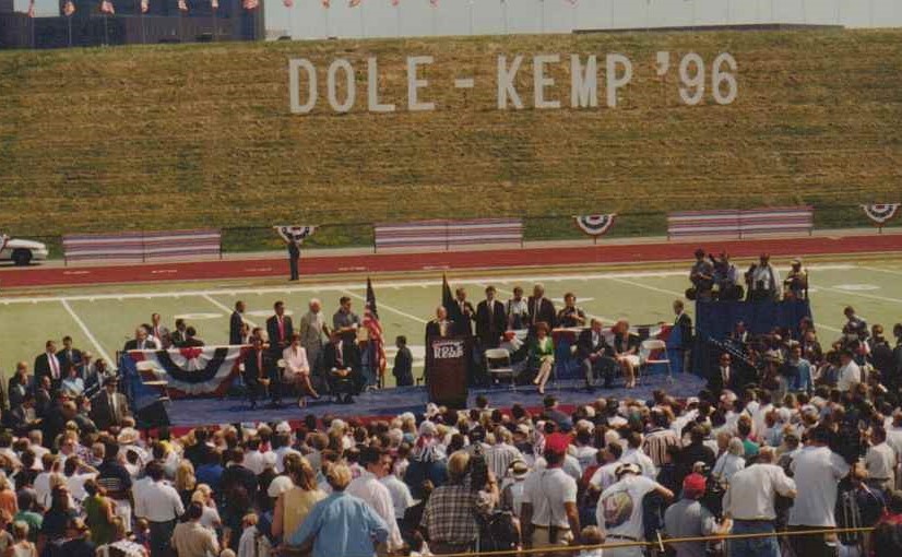 To increase enthusiasm, Dole made a dramatic move by resigning from the Senate in order to focus on the campaign. He explained, “I will seek the presidency with nothing to fall back on but the judgment of the American people and nowhere to go but the White House or home.” He subsequently campaigned nonstop to prove his vitality. His polling improved, but he still trailed Clinton. As Republican pundit Bill Kristol put it, “If a month from now, nothing’s changed, then you just have a 72-year-old ex-senator without a message instead of a 72-year-old senator without a message.”